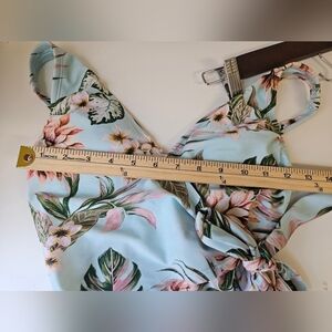 Kona Sol- Women's Blue Tropical Wrap-Front Full Coverage One Piece Sz S