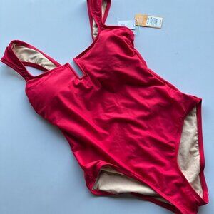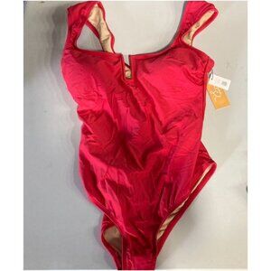 Kona Sol Women's Full Coverage Cap Sleeve U-Wire One Piece Swimsuit Red Medium