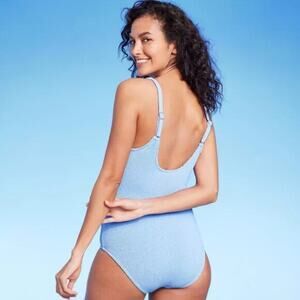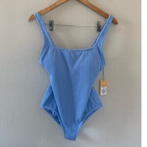 Kona Sol Women's Full Coverage Pucker Textured Square Neck One Piece Swimsuit