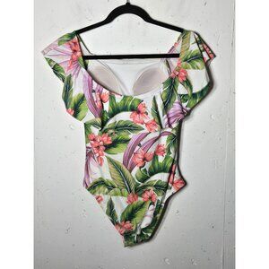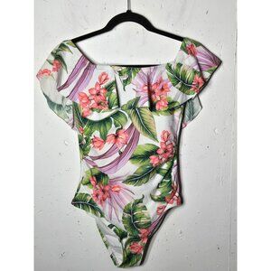 Kona Sol Womens Multicolor Floral Off The Shoulder One Piece Swimsuit Size Small