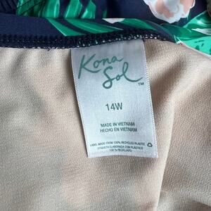 Brand new Kona Sol women's plus size shirred side-tie high waist high coverage sea breeze bikini bottom navy blue with light pink and white flowers - size 14W.
