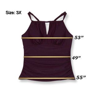• Kona Sol - Women's Post Mastectomy High Neck Tankini Top - Burgundy - 3X (24W-26W)
