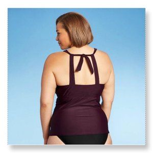 Kona Sol - Women's Post Mastectomy High Neck Tankini Top- Burgundy- 3X (24W-26W)