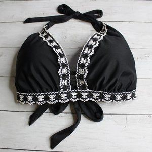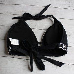 Kona Sol Women's Retro Halter Bikini Swimsuit Top Size L Black White