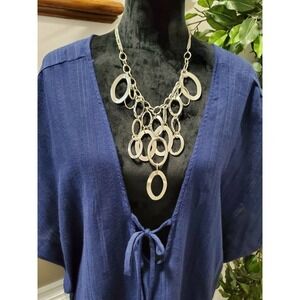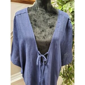Kona Sol Women's Solid Blue Polyester V-Neck Short Sleeve Blouse Size X-Large