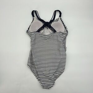Kona Sol Women's Swimwear High Coverage One Piece Striped Navy/White Size Large in excellent used condition.
