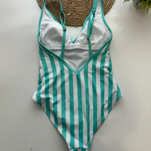 Kona Sol Women's V-Neck Over The Shoulder High Leg One Piece Swimsuit Size M