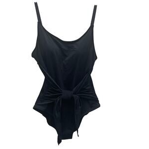 Kona Sol Women’s Wrap One Piece Black Swimsuit. Size Large (See last pic for size chart). Pull-on style swimsuit with adjustable straps and removable pads. Tie at front waistline or at back. 90% nylon and 10% spandex. New With Tags