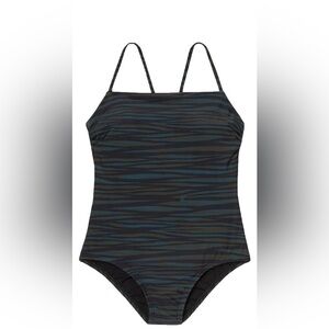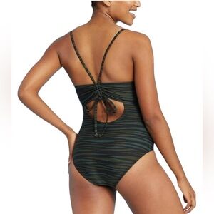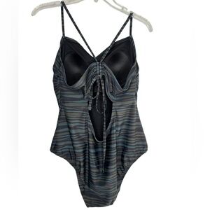 Kona Sol Women's XL Straight Neck Cinch Cut Out Back Modern One Piece Swimsuit