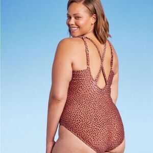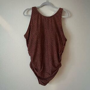 Kona Sol Women's Spotted Print High Neck Ruched High Coverage One Piece Swimsuit