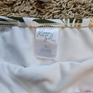 Dive into summer with the Kona Sol bikini, showcasing a vibrant floral design in cheerful shades of yellow and pink. This two-piece set features a classic triangle top and matching bottoms, perfect for a stylish day at the beach or pool. Crafted from quality swimwear material, it offers a comfortable fit with a slight sheen for a touch of elegance.