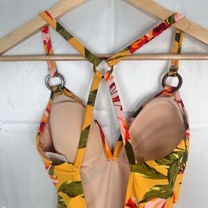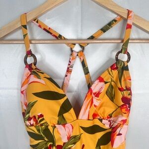 Kona Sol Yellow and Red One Piece Swimsuit with Tropical Floral Design