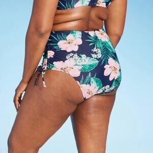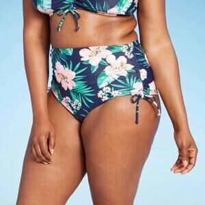 Women's Shirred Side-Tie High Waist High Coverage Sea Breeze Bikini Bottom NWT