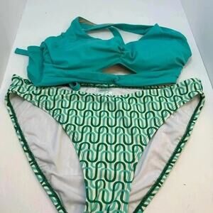 Kona Sol bikini teal top printed bottom NWT beach costal pool side
