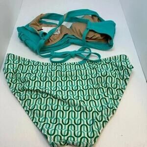 Kona sol bikini teal top with white and teal green bottom costal pool side costal