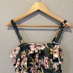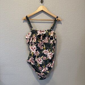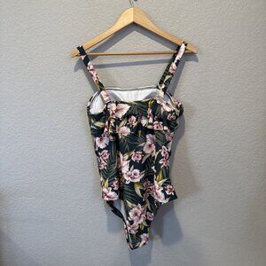 Kona Sol floral ruffle built in bra one piece swim suit womens 18W beachy pool