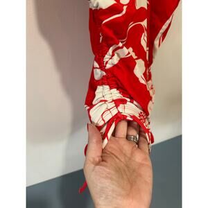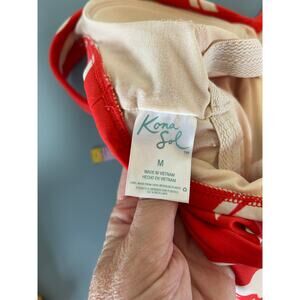 Kona Sol one piece swim suit size M red white floral print cinching on side