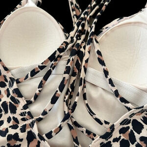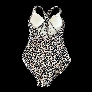 Kona Sol size small Leopard Print Cross Back One Piece Swimsuit Swim Strappy