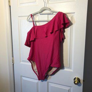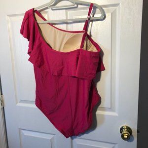 Kona Sol women's one shoulder Ruffle one piece swimsuit, size 20, new with tags - Ruffle One-Shoulder High-Coverage One-Piece Swimsuit from Kona Sol™. This pink one-piece swimsuit features a one-shoulder design adorned with ruffles for a charming look.