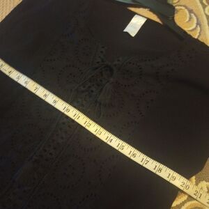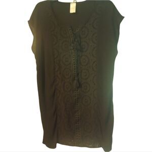 Kona Sol Black Eyelet Lace Swim Cover With Tassel Accent