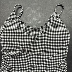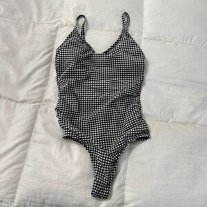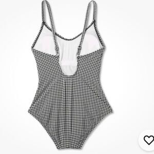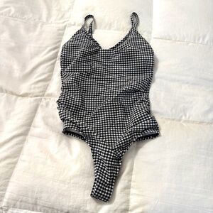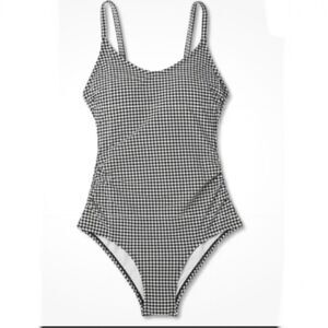 Kona Sol One Piece Black and White Gingham Swimsuit with ruching on the sides-M