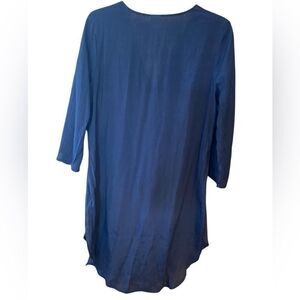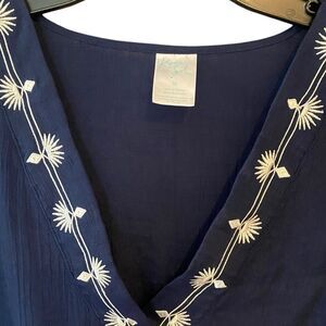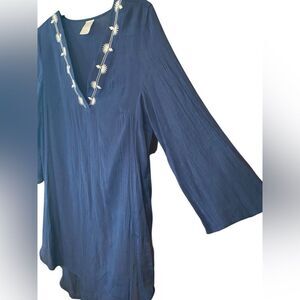 Kona Sol Sz M Navy Blue 3/4 Sleeve Embroidered V-neck Beach Swim Cover-Up Tunic