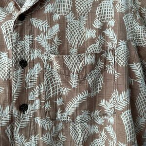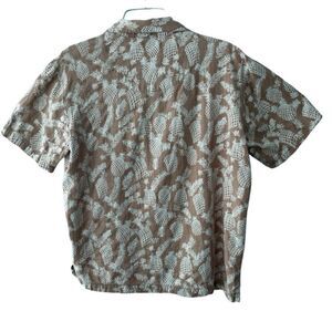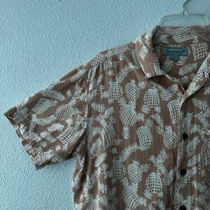 Kona Wind Button Front Tropical Shirt Tan White Pineapple Print Resortwear SZ S