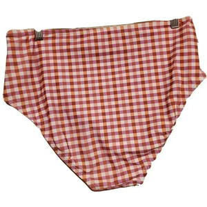 Kona sol Bikini Bottom Womens Orange Pink Large Plaid Swim High Waisted New