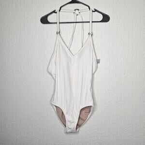 Kona sol Women's Small Ribbed Ring Medium Coverage One Piece Swimsuit- cream