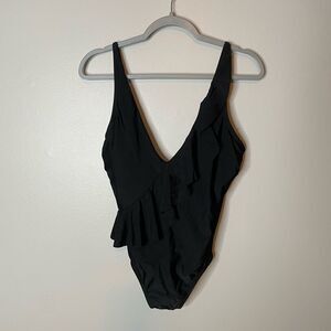 Brand New Kona Sol Ruffle One piece swimsuit. Super flattering asymmetric Ruffle. Features removable cups and a shelf bra. Adjustable straps.