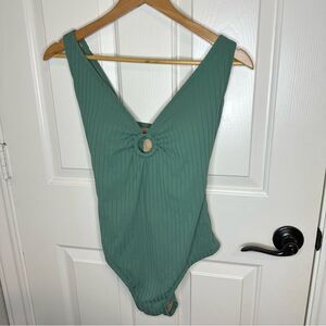 Kona Sol Sage Green Ribbed Crossover Back One Piece Swimsuit Sz L Minimalist