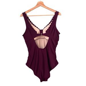 Kona Sol Scallop Neck Elegant Burgundy One Piece Swimsuit in Size Large