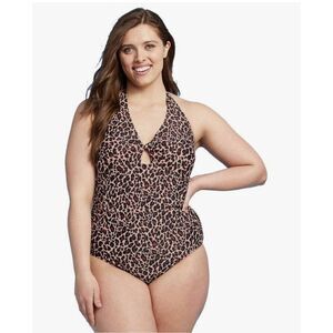 Kona Sol Womens Swimsuit 16W Leopard Twist-Front Halter One Piece Swimsuit Beach