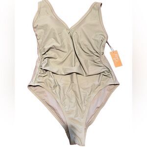 BSC23-This beautiful ruched side one-piece bathing suit is oh so sexy. Lightly padded shelf bra inside and adjustable straps in the back.