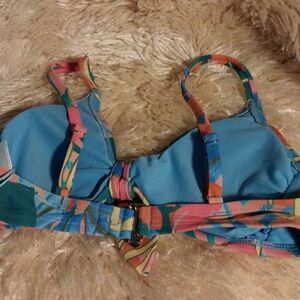 Kona SolWomen's Abstract Tropical Print Tie-Front Bikini Top NWT. Size S 4-6