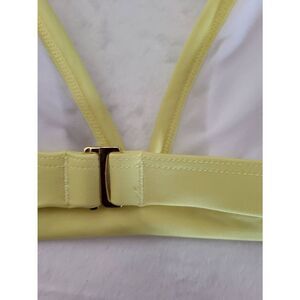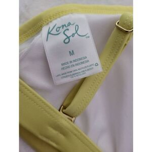 Size large (12 / 14) 14" rise Shell: 82% nylon 18% spandex Lining: 100% polyester Adjustable straps