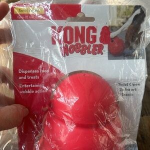 KONG Wobbler & KONG Jump’N Jack Chew Toys Treat Dispenser NWT. The Wobbler dispenses food & treats with an entertaining wobble action. Dishwasher safe. Small(up to 25 lbs). Jump’N Jack is a fun chew toy. Treats can be inserted and it has ridges to clean teeth. Fun toy to chase For a Medium size dog(15-35 lbs)