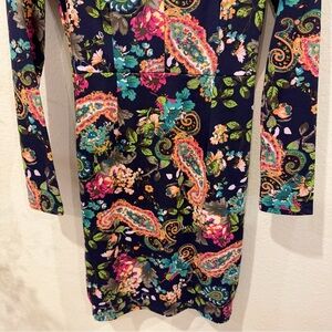 Konice Black Floral Print Long Sleeve Bodycon Mini Dress Size S Preowned