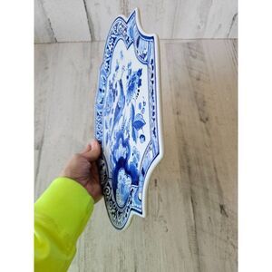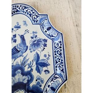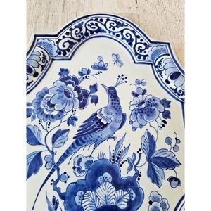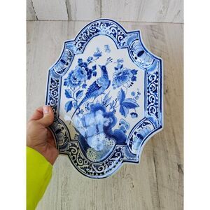 Koninklijke porcelain blue delft parakeet bird platter plate unique