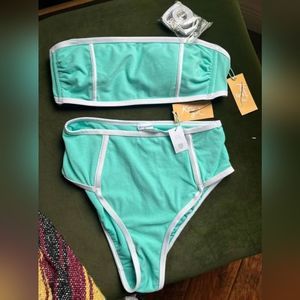 Kono Sol Terry Cloth Turquoise/White Bikini Swim Set, Removable Straps NWT XL