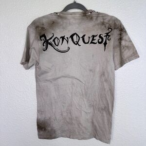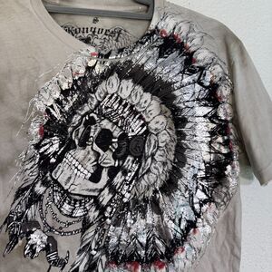Konquest Shirt Mens Small Skull Metallic Feather Warrior Graphic Tee Tshirt Y2K