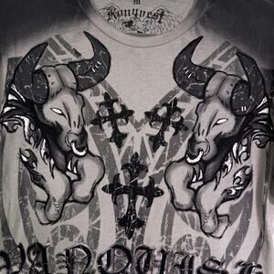 Konquest Y2K Shirt Mens Medium Bulls Gothic Skater Vanquish Graphic Tee Tshirt
