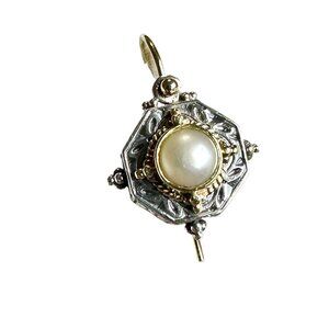 Konstantino Sterling Silver 925 & 18K Gold Pearl Earrings – Authentic Pre-Owned