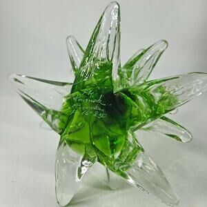 Konstglas Ronneby Sweden Crystal Glass Clear & Green Christmas Tree Signed . Measures about 10.5" T, 5.5" D. In excellent condition.