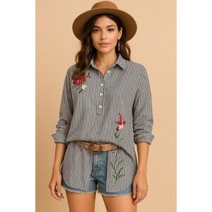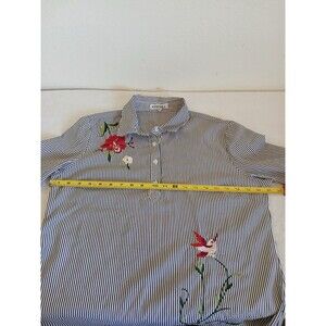 KontroL Contemporary Women’s Striped Flower Embroidered Shirt Blouse Size Large