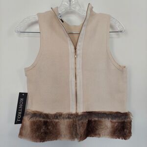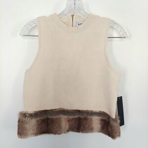 Kontrol Faux Fur Trim Crop Top M / L Beige Bodycon