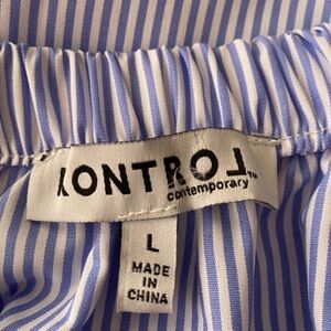 Kontrol Striped Blue & White Short Sleeve Lace Trim Off Shoulder Top L