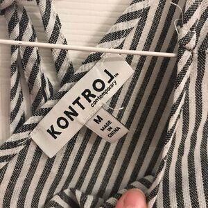Kontrol contemporary black gray white striped top