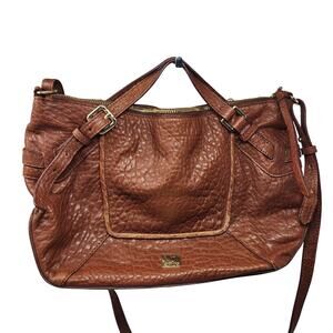 Kooba Brown Pebbled Leather Crossbody Slouchy Jonnie Tote Shoulder Bag Large