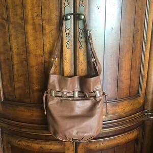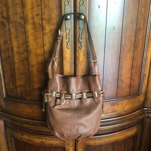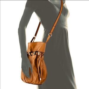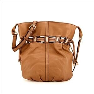 Kooba Echo Camel Tan and Gold Bucket Crossbody Bag 90s inspired